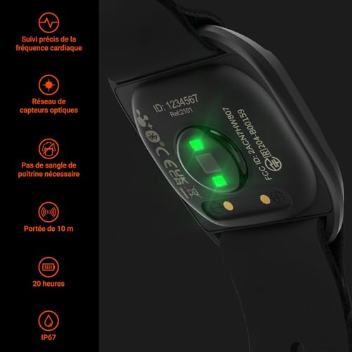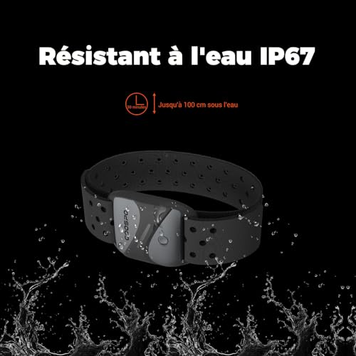 Résistant à la sueur et à l’eau – IP67 étanche empêche efficacement la sueur et l’eau de pénétrer dans l’appareil pendant l’exercice. NON recommandé pour la natation.
