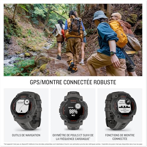 Garmin Instinct E – Montre GPS Robuste et connectée – Noir avec Bracelet Gris Charbon – Boîtier 45 mm