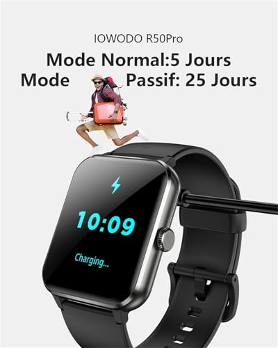 【Autonomie de Batterie Ultra-Longue】Cette montre connectée de sport possède une batterie de 350mAh qui dure 5-7 jours avec une charge de 2.5 heures, sa durée de fonctionnement s’élève à 30 jours en mode veille. Avec cette montre connectée de fitness au poignet,vous pouvez toujours rester bien énergique.Portez cette montre connectee, vous ne necessitez pas de chercher les appareils du rechargement fréquement, ce qui vous permet d’épargner beaucoup de temps.