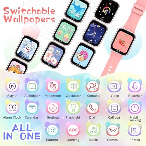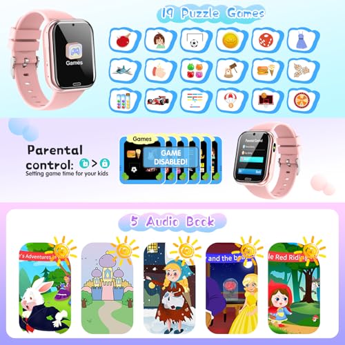 Tout en un : avec fonction d’appel, 19 jeux/SOS/mode scolaire/baromètre/lampe de poche/appareil photo/musique/vidéo/réveil/livres audio/calculatrice/lecteur/6 langues/mode muet/format 12-24 heures. Le cadeau parfait pour les garçons et les filles de 4 à 12 ans