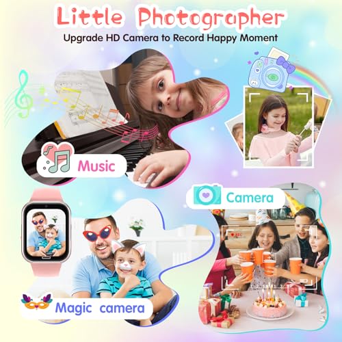 Montre Connectée Enfant – Smartwatch Téléphone Pour Fille Garçon avec Appel SOS, Réveil, 19 Jeux, Montre Intelligente Enfants de 4 à 12 Ans Cadeau avec Musique, Appareil Photo, Lampe Poche, Rose