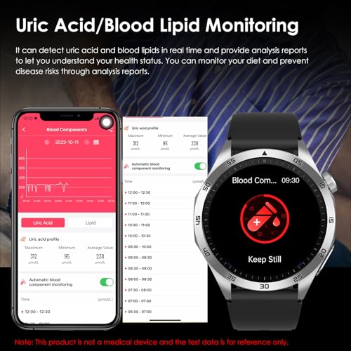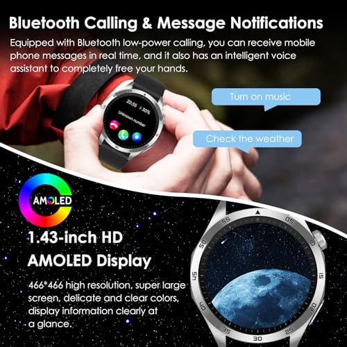 Nouveau Montre Connectée avec ECG/HRV/Acide Urique/Lipides/BMI, 1.43″ AMOLED Smartwatch avec Appel Bluetooth, Fatigue, Humeur, Température Corporelle, SPO2, Surveillance du Sommeil pour Android/iOS