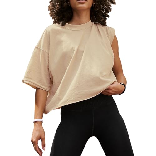 EBANKU Chemises d’entraînement surdimensionnées pour Femmes, Hauts Courts à Manches Courtes, décontractés, Basiques, en Coton, athlétique, Yoga, Course à Pied