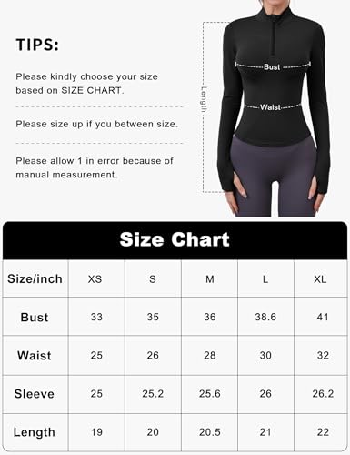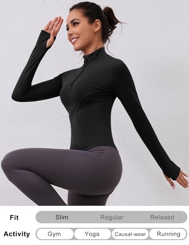 Special Features: manches longues pour femme est conçu avec des trous pour les pouces pour maintenir les manches en place et les empêcher de courir. Dans le même temps, la conception de la 1/4 fermeture éclair facilite et accélère l’enfilage et le retrait, ce qui le rend très approprié pour les amateurs de sport et de running.
