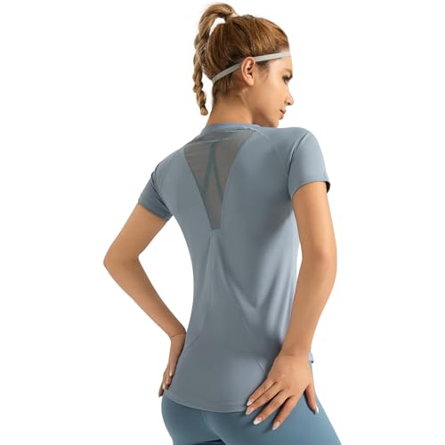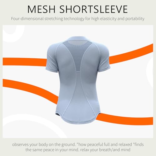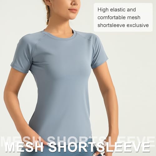 Women’s Gym Shirts Yoga Running Sports Tops Breathable Athletic Exercise Teeshirts Quick Dry Short Sleeve