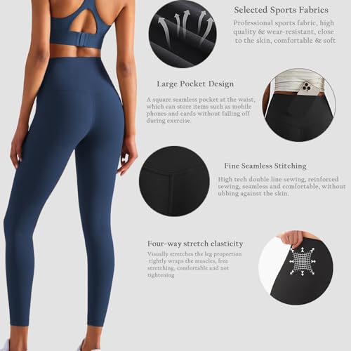 Legging de Sport Femme Pantalon de Yoga Pilates Compression Taille Haut Sculptants Push up Slim Fit Butt Lift Élastique Legging Fitnes avec Poches Tight Pantalon de Joggings Gym Running Course