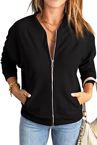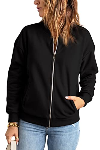 GeGekoko Sweat-shirt zippé pour femme – Veste surdimensionnée – Couleur unie – Manches longues – Haut avec poche