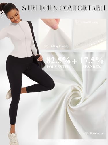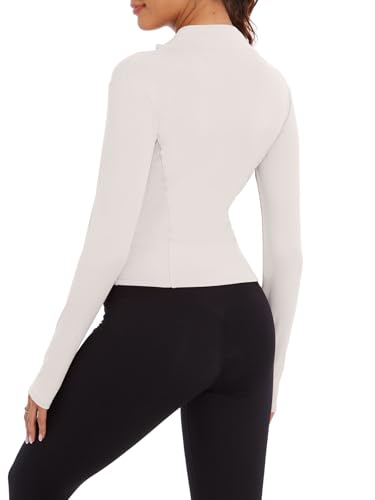 Veste de Sport Femme Léger Veste de Yoga Respirante Veste de Course à Manches Longues Séchage Rapide Haut de Fitness Running Entraîne Jogging Top avec Fermeture Éclair Trous pour les Pouces