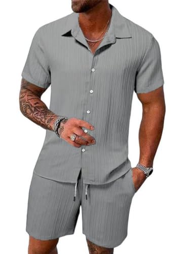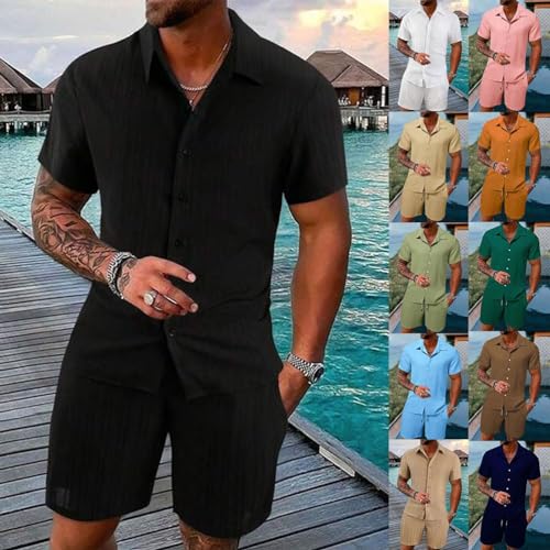 Ensemble Jogging Homme 2 Pièces d’été à Manches Courtes Homme Polo + Shorts Décontractée Homme Activewear Polo Chemises avec Bouton + Pantacourt pour Fitness Sport Course