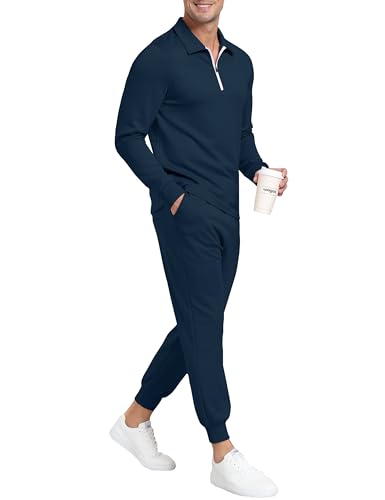Survêtement Homme Ensemble Jogging Survêtement de Sport Décontracté Tenue Manche longue Doux Mode Sweatshirt éclair 1/4 et Pantalon de sport avec Poches