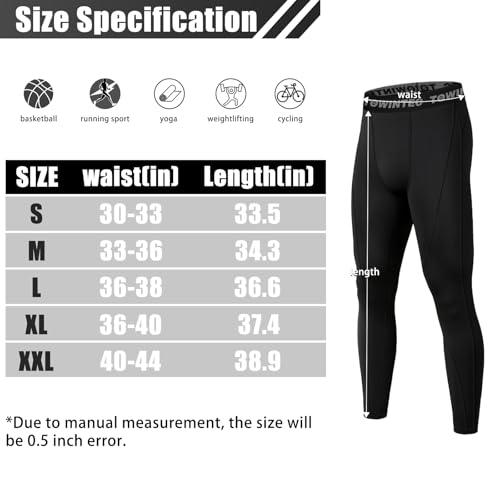 Pantalon de Compression pour Hommes Séchage Rapide Baselayer Long Sport léger Respirant Leggings Pantalon de Course Tight et Extensible Caleçons de Collant Basketball Fitness Jogging