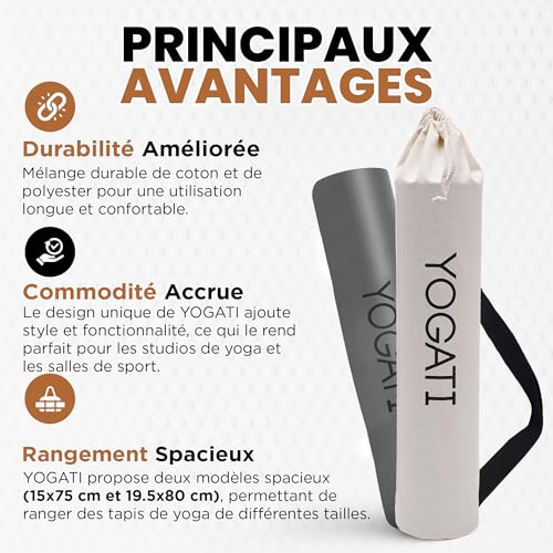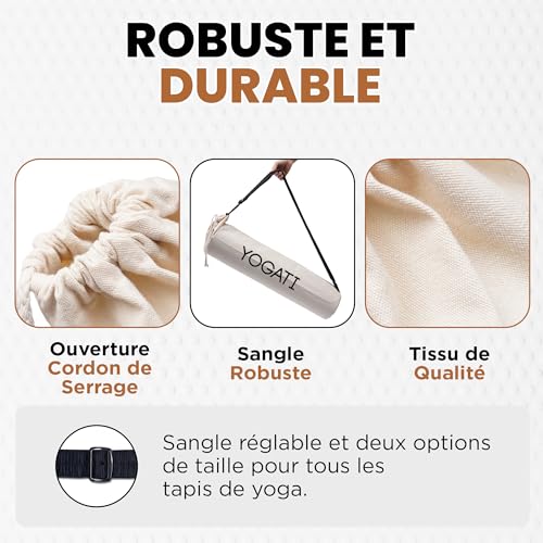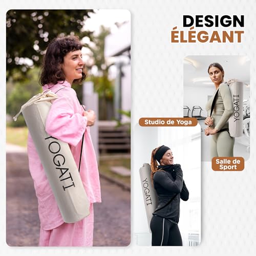 Design Élégant : Avec le design unique de la marque YOGATI, notre sac tapis yoga est à la fois fonctionnel et esthétique. Il vous permet de transporter votre tapis de sport avec style, que ce soit pour le studio de yoga, la salle de sport ou ailleurs.
