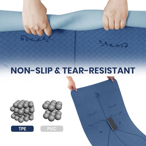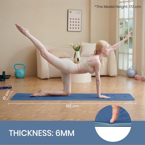 Tapis de yoga 6 mm – Tapis de gymnastique en TPE – Antidérapant – Tapis de fitness – Tapis d’entraînement – Tapis de Pilates – Pour yoga, pilates et entraînement – 183 x 61 x 0,6 cm